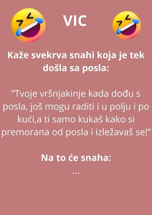 Kaže svekrva snahi koja je tek došla sa posla: