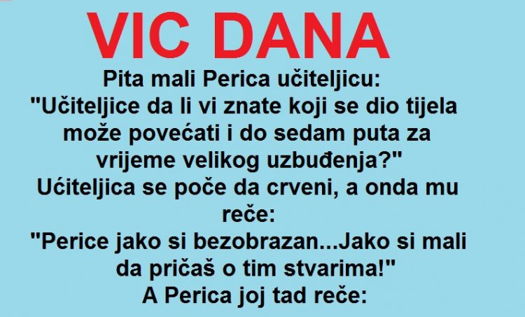 “Učiteljice da li vi znate koji se dio tijela može povećati i do sedam puta za vrijeme velikog uzbuđenja?”