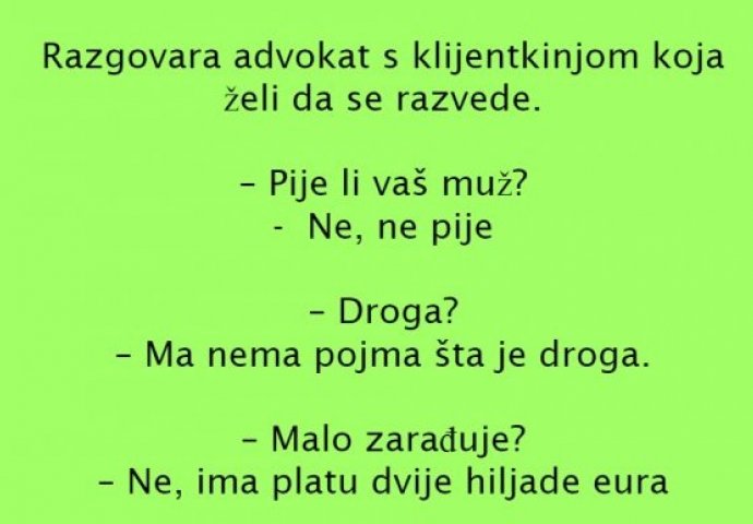 – Pa koji je onda razlog za rastavu draga gospođo?