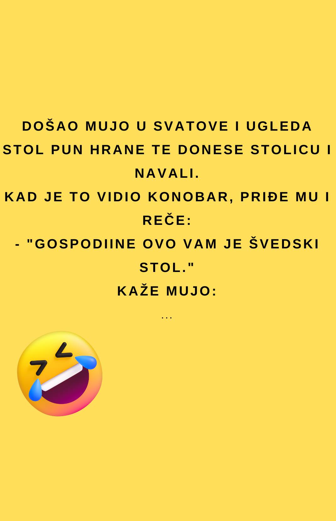 Došao Mujo u svatove i ugleda stol pun hrane te donese stolicu i navali.