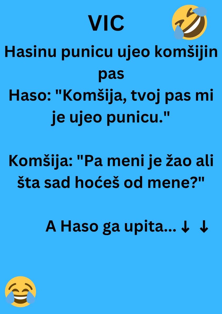 Haso: “Komšija, tvoj pas mi je ujeo punicu.”