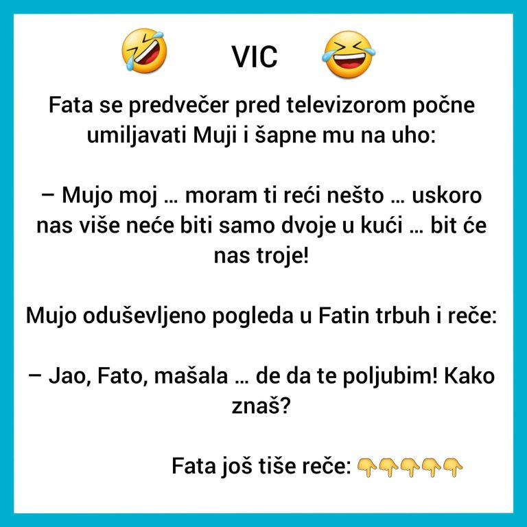 – Mujo moj … moram t’ reć’ nešto … uskoro nas više neće biti samo dvoje u kući … bit će nas troje!