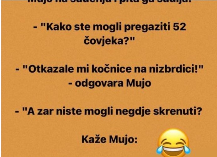 “Otkazale mi kočnice na nizbrdici!” – odgovara Mujo