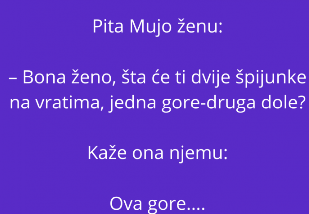 – Bona ženo, šta će ti dvije špijunke na vratima, jedna gore-druga dole?