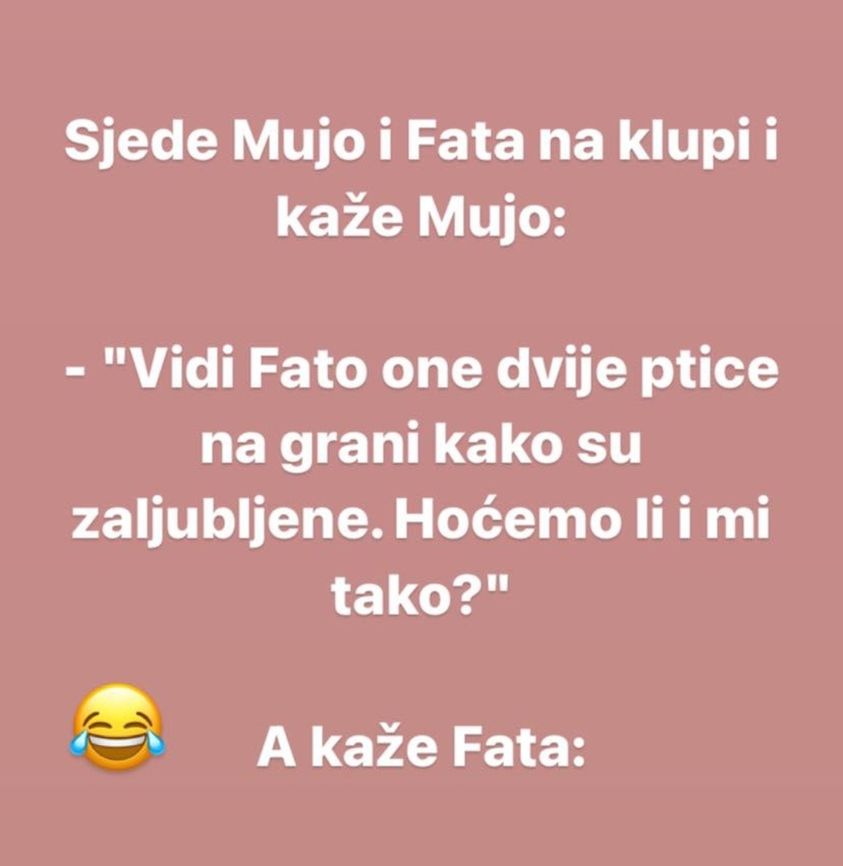 Sjede Mujo i Fata na klupi i kaže Mujo: