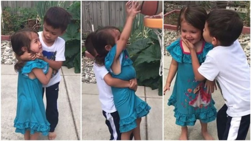 Sarahanne Mora, majka dvoje djece iz Kalifornije, na Instagramu je objavila video na kojem se vidi kako njezin sin Jaxson tješi sestricu Freelee nakon što ju je pogodila lopta u lice.