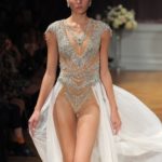 Međutim, sprijeda se vidi da je ovaj kreator ukombinovao dvije potpuno nespojive stvari – kupaći kostim i vjenčanicu.