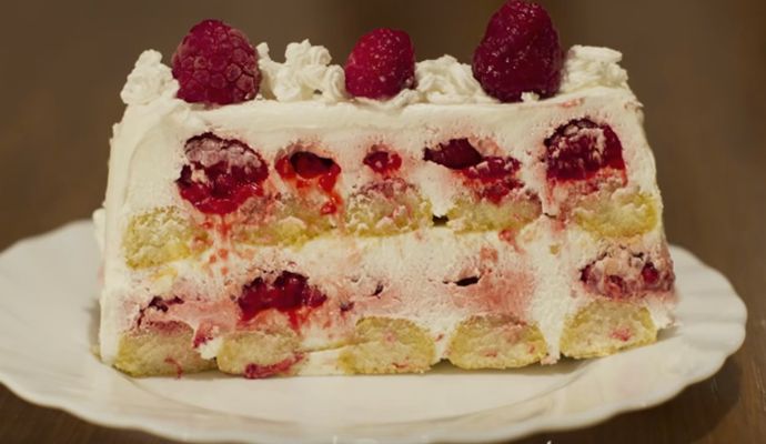 Kolač dobro rashladiti, dekorisati voćem iseckanim na kockice i seći na šnite.