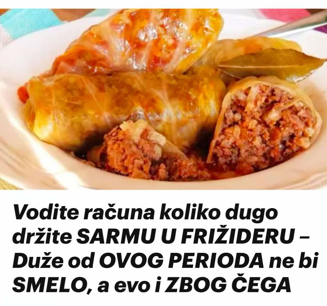 – Sarmu je potrebno čuvati u frižideru pa je treba pojesti između tri do četiri dana. Preporučuje se podgrevanje količine dovoljne za jedan obrok pa obavezno pustite da provri kako bi se sprečio rast mikroorganizama. Može se i zamrznuti pa tako čuvati do četiri meseca – kaže Šoštarić.
