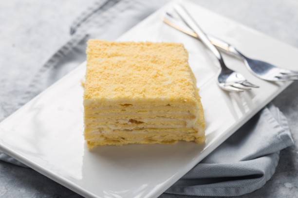 Zatim nanesite treću koru, premažite je džemom i završite četvrtom korom. Lagano pritisnite kolač i ostavite ga da se dobro ohladi kako bi se kore povezale i džem upio.