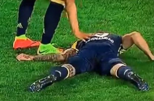 Iako je nespretno aterirao, nije se činilo da su posljedice ozbiljne sve dok Fernandao nije stao urlikati od boli, dok je zdravom rukom udarao po travi, po kojoj se višestruko slomljena ruka ispružila u potpuno neprirodnom položaju.