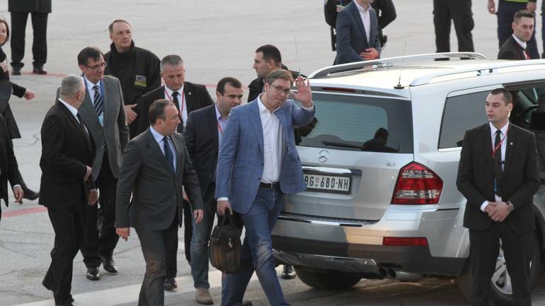 Vučića su na Međunarodnom aerodromu dočekali ministar vanjskih poslova Bosne i Hercegovine Igor Crnadak i ambasador Srbije u BiH Stanimir Vukičević.