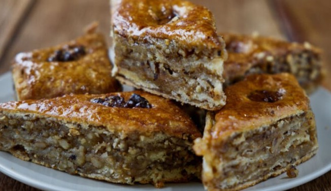 Napomena: Kako bi kasnije lakše rezali tortu, gornju koru možete unaprijed izrezati na šnite (12-16 kom) pa tako izrezane šnite posložiti na vrh torte.