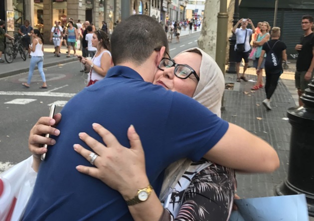 U Barceloni je, nakon terorističkog napada, upriličeno okupljanje na kojem su se građani grlili kako bi iskazali solidarnost, javlja Anadolu Agency (AA).