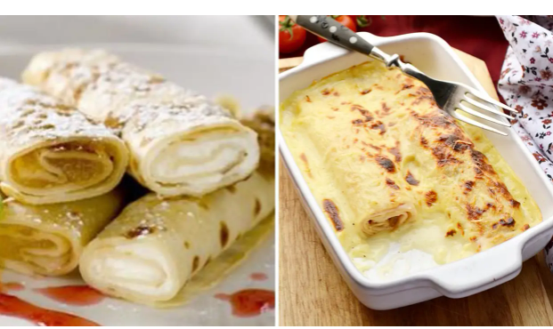 Zapečene palačinke sa sirom u dvije varijante, slatkoj i slanoj