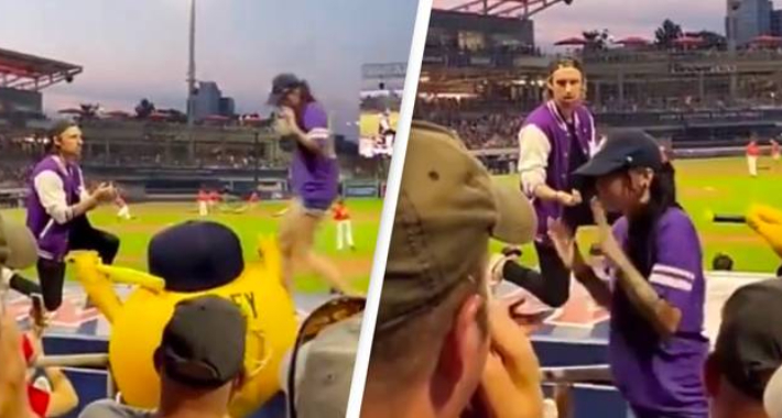 Javna prosidba na bejzbolskoj utakmici u Massachusettsu prošle sedmice nije prošla kako je očekivao nesretni muškarac.