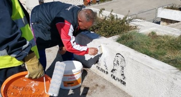 Ovoj ceremoniji, kako je objavljeno na društvenim mrežama, prethodilo je krečenje zidova na kojima su se nalazili grafiti sa likom Olivera Ivanovića.