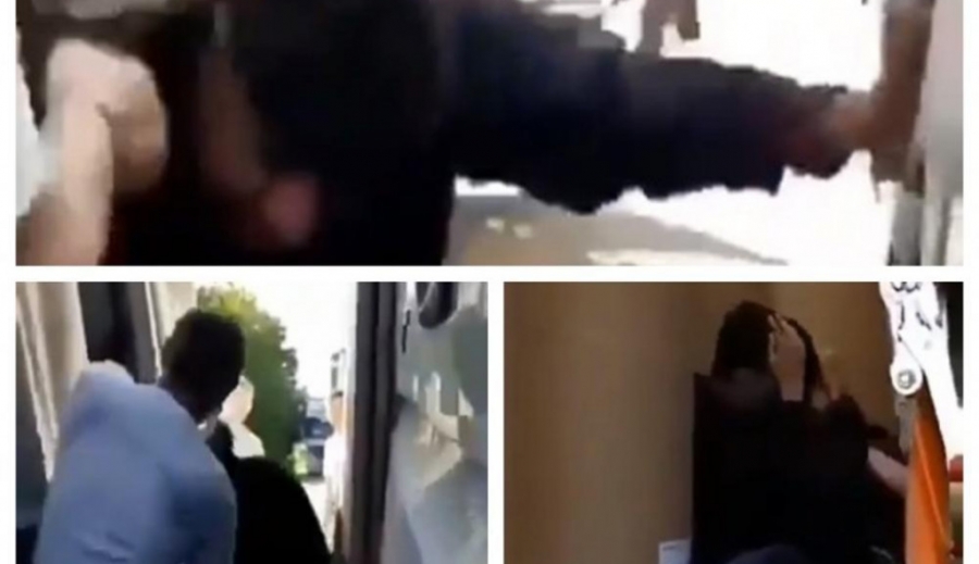 Na snimku se vidi da ih vozač udara pesnicama iako se oni ne brane i ne uzvraćaju udarac.