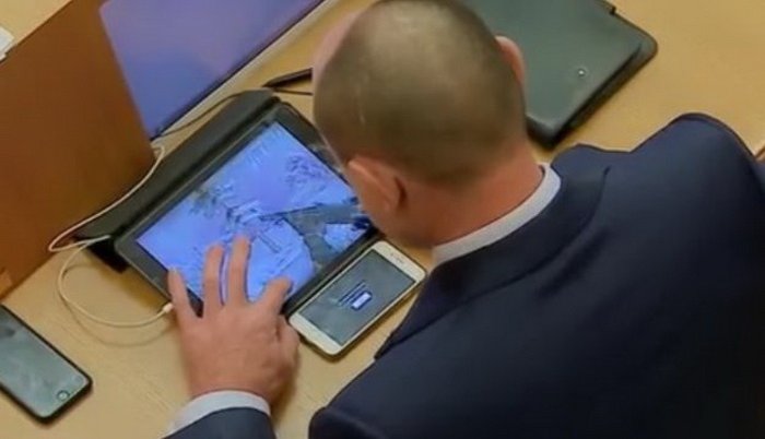 Dok je tamošnji guverner podnosio izvještaj o budžetu, Sevelijev je ubijao vrijeme igrajući igrice na tabletu.