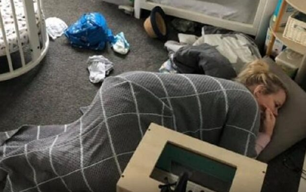 – U jednom trenutku moja supruga je menjala pelene, u drugom je više nije bilo – započeo je svoju priču Piter ispod fotografije na kojoj se vidi kako njegova supruga spava na podu pored krevetića.