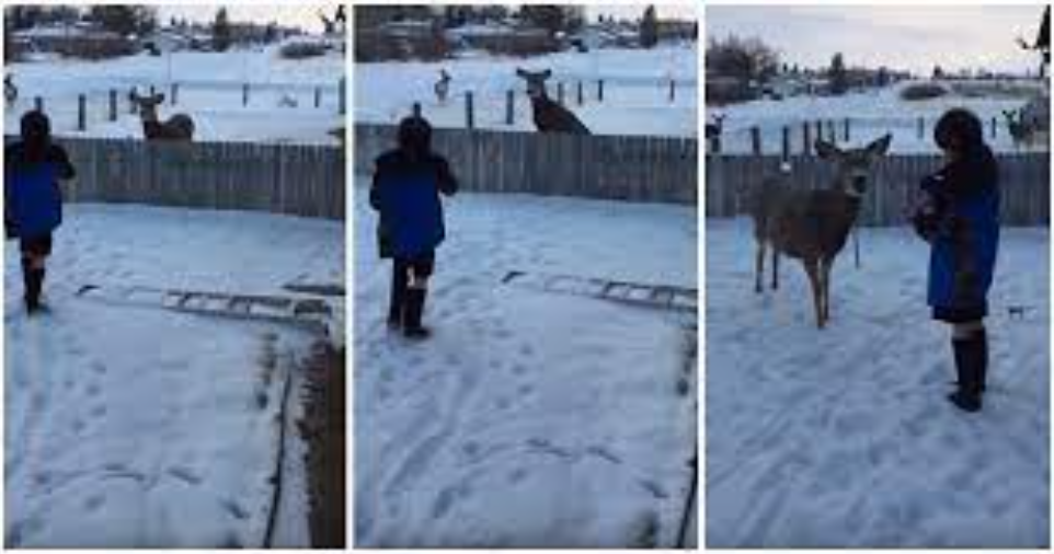 Ova žena je objasnila kako je trebalo malo vremena da jeleni skupe hrabrosti i približe se. Rekla je da su prvo došli blizu kuće te su tada shvatili da su mogli doći i do njih. Čitava porodica je izašla napolje kako bi ih nahranila, a ono što je ohrabrilo jelena je ustvari smireni stav ove porodice, te su se zbog toga vraćali svakog dana od božića. Oduševljeni su zbog toga što se jeleni osjećaju sigurno u njihovom dvorištu, te ih vole hraniti kad god imaju jabuke.