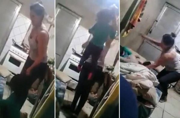 Na snimku koji je objavljen u argentinskim medijima, vidi se kako hvata za kosu trogodišnju djevojčicu, podiže je sa kreveta i udara optužujući je da je izgubila njen tablet.