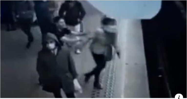 Na snimci nadzornih kamera vidi se kako počinitelj hoda naprijed-natrag po peronu, a zatim ženu s leđa gurne na tračnice. Drugi ljudi koji su stajali na peronu pomogli su joj da se makne s tračnica i vrati se na peron.