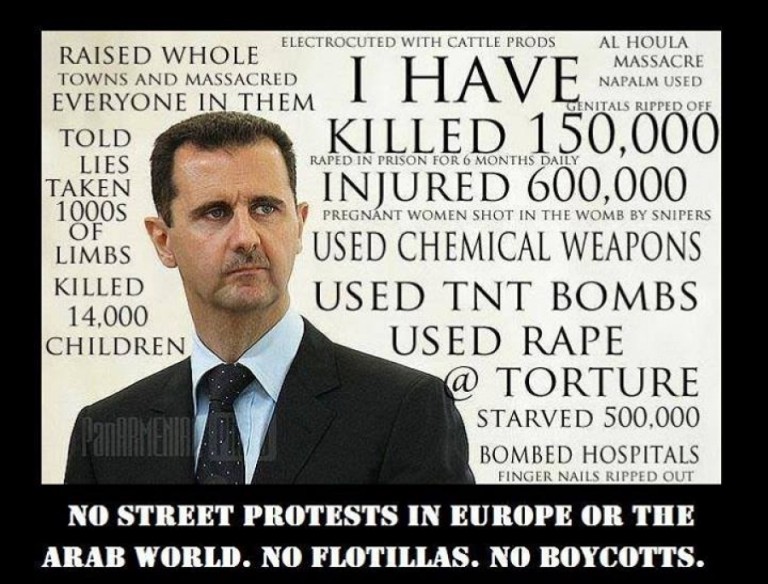 Posljednji monstruozni čin Asadovih snaga, kojima leđa drže Iran i Rusija, a koje je Amnesty International nazvao ‘ratnim zločinom epskih razmjera’, je divljačko bombardiranje izgladnjelih civila u Ghouti. Procjenjuje se da je diljem Sirije stradalo oko 400.000 ljudi, da je polovica populacije razmještena i da je veliki broj ljudi nestao što se u mnogim slučajevima povezuje sa zatočeničkim centrima koji su na zlu glasu zbog ekstremne torture zatočenika.