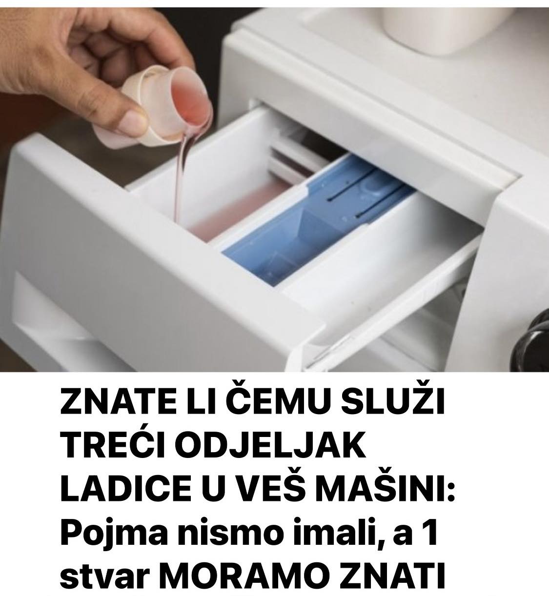 Veš mašine uglavnom imaju tri odjeljka u ladici, ali ipak većina ljudi ne zna čemu služi treći. Trebalo bi napomenuti da prije upotrebe veš mašine detaljno pročitate uputstva za njenu upotrebu kako ne biste pokvarili mehanizam. Svaki odjeljak u veš mašini ima svoju svrhu, a mnogi ne znaju čemu služi treća pregrada, piše B92.