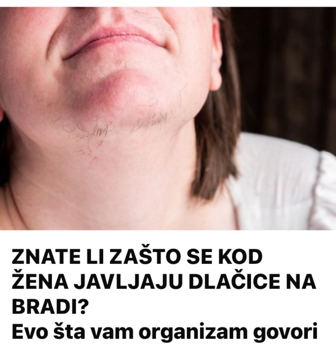 Ako doživite poznu starost, dočekate 80. ili 90. rođendan, onda rizikujete da počne da vam raste brada kao muškarcima. Neke žene mogu da razviju dlake na licu ranije tokom menopauze jer proizvode manje estrogena.