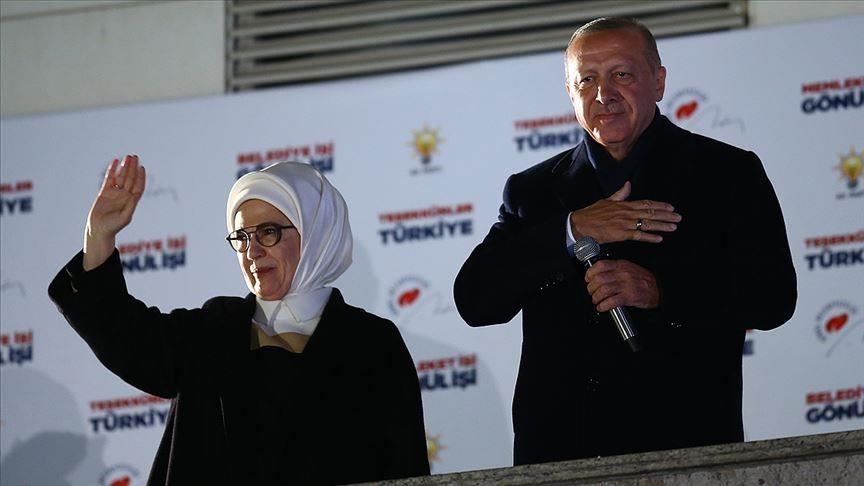 Vladajuća turska Stranka pravde i razvoja osvojila je 44,42 posto glasova i pobijedila u većini gradova, a taj uspjeh su Erdoganu među prvim čestitali i predsjedavajući Predsjedništva Bosne i Hercegovine Milorad Dodik i predsjednik Stranke demokratske akcije (SDA) Bakir Izetbegović.