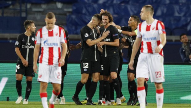 Parižani su nakon poraza na startu takmičenja u okviru grupe C večeras na “Parku prinčeva” savladali beogradsku Crvenu zvezdu sa 6:1. Trostruki stijelac bio je Brazilac Neymar (20., 22., 81.), a po jedan pogodak postigli su Edinson Cavani (37.), Angel Di Maria (42.) i Kylian Mbappe (70.). Jedini pogodak za Crvenu zvezdu postigao je Marko Marin (74.).